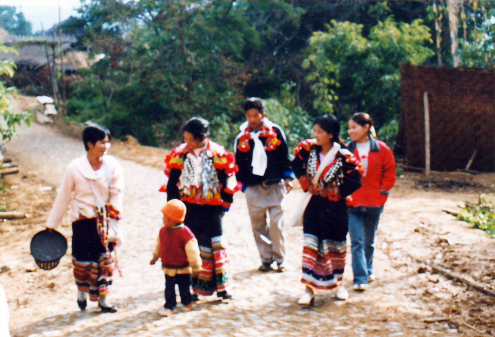 德昂族青年男女結(jié)婚前,都要先舉行認(rèn)親儀式。屆時,男方的親戚如舅父、叔伯等陪同男青年到女方家,用帶去的酒肉糖茶等熱情地宴請女方家人,并分別贈送禮品給女方家庭成員。認(rèn)親過后,女方就請卜卦人選定吉利的日子作為婚期,然后再通知男方家。男方要將彩禮于結(jié)婚前送達(dá)女方家(圖為德昂族女青年,1994)。