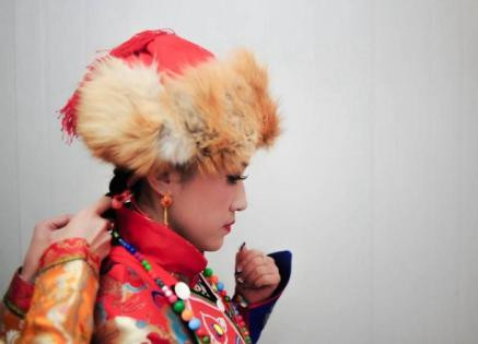 裕固族婦女的狐皮帽子