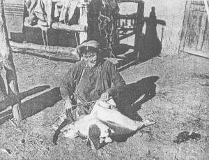 這之后,我們來到鄂倫春族的一個定居點——托河做調(diào)查。托河保留著比較完整的鄂倫春族狩獵文化,男人們打獵、捕魚,女人們則負責(zé)做飯、熟獸皮、用皮子做衣服等。女人縫獸皮衣時,用的針還是骨針,線則是野獸的筋。當(dāng)然,她們還用樺樹皮做各種生活用品,如籃子、盒子、筒子等。