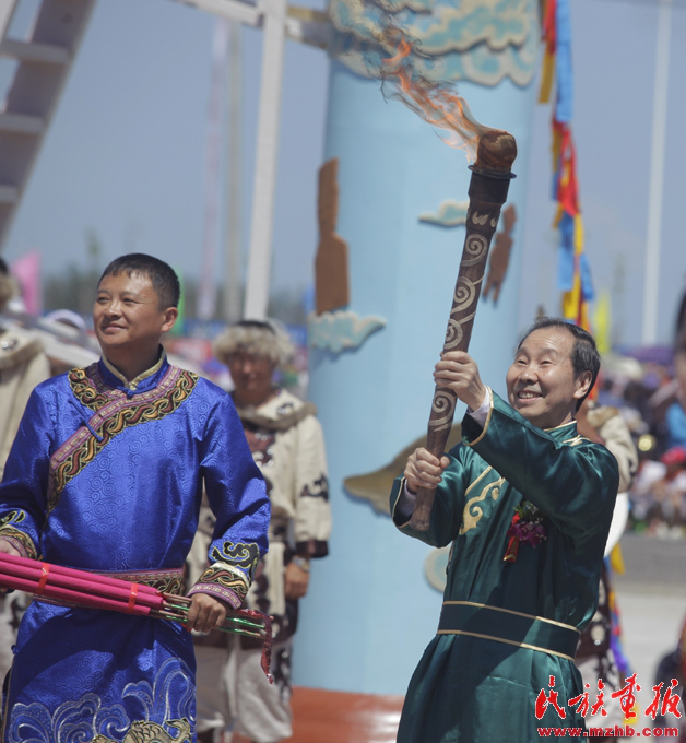 赫哲族“烏日貢”節(jié)在黑龍江同江市舉行。國家民委專職委員葛忠興(赫哲族)點燃象征火炬的圣香,開啟了今年的節(jié)日活動
