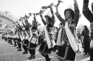 2014年2月6日,云南西雙版納傣族自治州景洪市基諾山鄉(xiāng)人頭攢動(dòng),歡聲笑語。來自四面八方的賓客云集在大鼓舞廣場,與基諾族同胞一起歡度“特懋克”節(jié)。