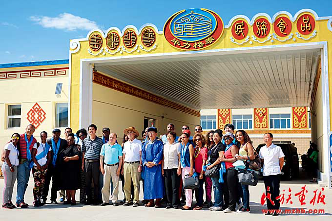 2016年,畢力格泰公司成功申請(qǐng)為國(guó)家2A級(jí)民族食品體驗(yàn)游景區(qū),圖為非洲考察團(tuán)到公司參觀。