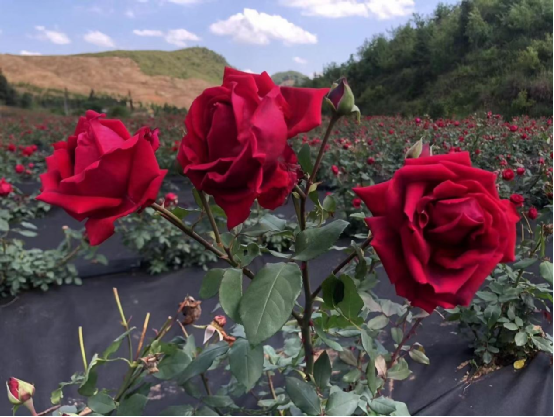 2019年,阿舍鄉(xiāng)斗南村成立清香玫瑰合作社,通過土地流轉(zhuǎn)種植玫瑰105畝,主要種植金邊玫瑰、墨紅玫瑰、藍蝴蝶等品種。通過幾年的發(fā)展,斗南村的玫瑰花茶已經(jīng)形成“種植、加工、銷售”為一體的產(chǎn)業(yè)化發(fā)展模式,每年帶動就業(yè)200多人,戶均增收1萬多元。