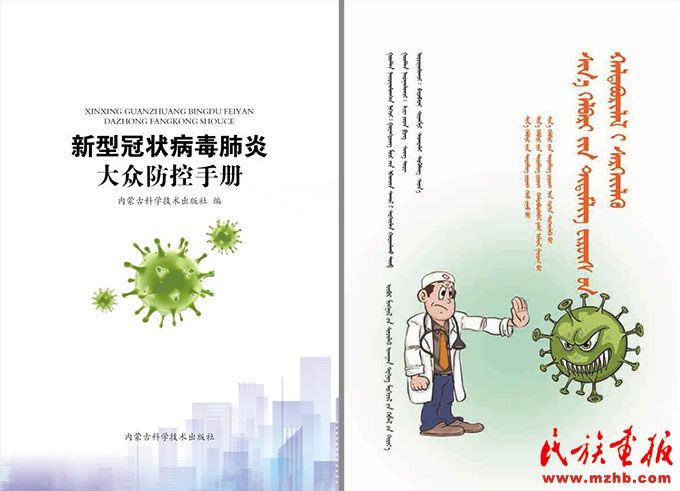 內(nèi)蒙古科學(xué)技術(shù)出版社出版的《新型冠狀病毒肺炎大眾防控手冊》(蒙古文版、電子版)。