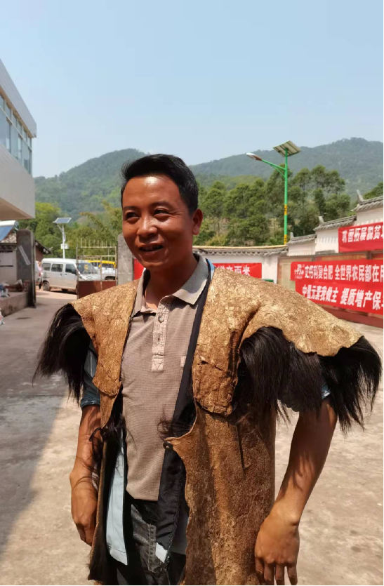如果說鎮(zhèn)沅的蜘蛛衣和樹皮衣是見證各民族社會(huì)發(fā)展變遷的文物,是陳列在博物館中的“鎮(zhèn)館之寶”。那么在鎮(zhèn)沅農(nóng)村偶爾還能見到的與群眾生產(chǎn)生活密切相關(guān)的羊皮衣則是能穿在身上的“古董”。