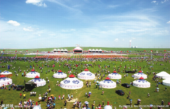 “那達(dá)慕”蒙古語為“娛樂”或“游戲”音譯。為蒙古族的傳統(tǒng)節(jié)日,據(jù)傳始于漢代。一年一度由一旗或數(shù)旗聯(lián)合在農(nóng)歷七八月舉行,每次一至數(shù)日,規(guī)模大小不一。是時(shí)正是草原上氣候怡人、綠草如茵、百花盛開、牛羊肥壯的黃金季節(jié)。節(jié)日期間,牧民們身穿節(jié)日新衣,乘馬驅(qū)車,從四面八方匯聚一處。一時(shí)草原上五彩旗幟如霞云飄掠,蒙古包如點(diǎn)點(diǎn)珍珠,一片節(jié)日氣象。大會上不僅有傳統(tǒng)的賽馬、摔跤、射箭等競技項(xiàng)目,拔河、藍(lán)球、下蒙古象棋等體育比賽,而且還有豐富多彩的文藝演出和琳瑯滿目的物資貿(mào)易交流。如今那達(dá)慕大會已經(jīng)成為草原上集體育比賽、文化娛樂、經(jīng)濟(jì)貿(mào)易、慶賀豐收為一體的綜合性盛大節(jié)日。