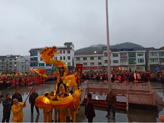 2019年2月16日農(nóng)歷正月十二是瓦寨鎮(zhèn)傳統(tǒng)大型集會活動日,舞龍為主要活動之一。午飯后,來自全縣各地的舞龍舞獅隊、花燈隊陸續(xù)到瓦寨政府廣場集結(jié),并在廣場右側(cè)有序排隊等待,各隊隊員精神抖擻、神采飛揚、迫不及待。前來參觀元宵舞龍的群眾和游客也不斷涌向廣場,大街小巷行人猶如潮涌,吆喝聲、歡笑聲、鑼鼓聲連綿不斷……下午五時許,活動在瓦寨鎮(zhèn)政府廣場正式開始,先是由鎮(zhèn)領(lǐng)導(dǎo)對脫貧攻堅各項惠民政策及5年來瓦寨取得的攻堅戰(zhàn)績進行宣講,宣講慳鏘有力、扣人心弦,特別是5年來瓦寨取得的攻堅戰(zhàn)績,一致得到人民群眾好評和認可。隨后,舞龍、舞獅、花燈表演紛紛上演,只見黃龍時而上下翻騰,時而昂首擺尾,雄獅時而就地打滾,時而賣萌撒嬌,樣子憨態(tài)可掬,花燈表演幽默滑稽,在前行中跑出各種套路,起伏波動、生動活潑,吸引了所有人的目光,贏得了陣陣喝彩……