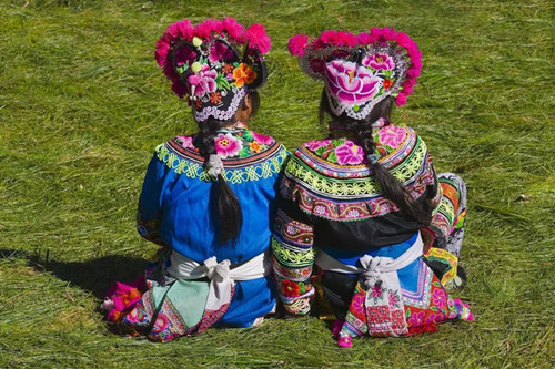 在楚雄,圍腰在彝家服飾中扮演了很重要的角色。彝族婦女的圍腰,在日常生活和生產(chǎn)中具有保暖、兜攏東西、占卜的實(shí)用功能。
