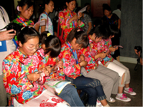 內(nèi)蒙古和林格爾剪紙是中國北方剪紙最具代表性的剪紙文化遺存之一,是由世代生活在和林格爾地區(qū)的農(nóng)牧民勞動婦女為主體創(chuàng)造的,經(jīng)過代代傳承發(fā)展,成為承載本土民族文化基因的重要的非物質(zhì)文化。二十世紀(jì)七、八十年代以來,隨著經(jīng)濟社會向工業(yè)文明的急速轉(zhuǎn)型,人們的生產(chǎn)、生活方式和觀念發(fā)生了重大轉(zhuǎn)變,和林格爾剪紙面臨消亡的境地。老一輩和林格爾民間剪紙傳承人大都生活窘困,有許多已相繼辭世,她們長達七、八十年藝術(shù)實踐所形成的這一古老文化傳承也因此面臨人亡藝絕,而年輕一代剪紙隊伍又尚未形成,和林格爾剪紙的發(fā)展出現(xiàn)了青黃不接的瀕危狀況。帶著全社會的關(guān)注,1998年7月10日,在時任和林格爾縣委宣傳部長姚子明同志的支持下,和林格爾縣成立了內(nèi)蒙古自治區(qū)第一個旗縣剪紙學(xué)術(shù)組織——和林格爾剪紙學(xué)會。和林格爾剪紙學(xué)會的成立,是和林格爾剪紙文化事業(yè)發(fā)展的一個里程碑和轉(zhuǎn)折點。多年來,和林格爾剪紙學(xué)會克服困難,深入搶救、發(fā)掘、整理和保護了縣境一大批珍貴的原生態(tài)剪紙遺存和老一輩剪紙傳承人。從1994年到2010年,共已累計搶救、發(fā)現(xiàn)珍貴的原生態(tài)和林格爾剪紙七萬余幅,發(fā)現(xiàn)和保護老一輩剪紙傳承人2600余人,其中有140余名70歲以上的老一輩剪紙傳承人,學(xué)會做為重點搶救、考察對象而開展了全年跟蹤式搶救、保護和記錄。和林格爾剪紙學(xué)會對已發(fā)現(xiàn)的老中年剪紙傳承人給予物質(zhì)獎勵和精神關(guān)懷,激活了人們對于剪紙傳承的積極性和創(chuàng)作熱情,以農(nóng)村婦女為主體的傳承群體又重新拿起剪刀,開始了剪紙的傳承和傳播。多年來,和林格爾剪紙學(xué)會在段建珺會長的帶領(lǐng)下,以“讓老大娘們重新拿起剪刀,讓年輕一代傳承剪紙”為宗旨,積極開展各類剪紙活動,努力探索剪紙在新形勢下的教育傳承和發(fā)展工作,涌現(xiàn)出以張花女、段建珺等為代表人物的一大批才華橫溢,在國內(nèi)外有影響的杰出剪紙傳承人和經(jīng)典剪紙作品。百歲剪紙大師張花女出生于清代光緒年末年,剪紙學(xué)會發(fā)現(xiàn)她時,老人已是96歲高齡。在學(xué)會的幫助下,她重新拿起剪刀,傳承和創(chuàng)作了大量剪紙,堪稱珍品。張花女的作品,將剪和紙的特性發(fā)揮到了幾盡完美的境界,圓潤而不浮華,凝重而不果板,簡約而不單簿,通俗而不失典雅。她剪的《魚龍變化》、《蒙人進城》、《碾場》等作品,反映了遠古時期仰韶文化與紅山文化、中原文明與草原文明在該區(qū)域碰撞、交流、融合的歷史遺存,具有很高的藝術(shù)考古價值。在長達一個多世紀(jì)生命的最后幾年中,張花女用剪刀和紅紙創(chuàng)造了一個當(dāng)代中國剪紙的神話。