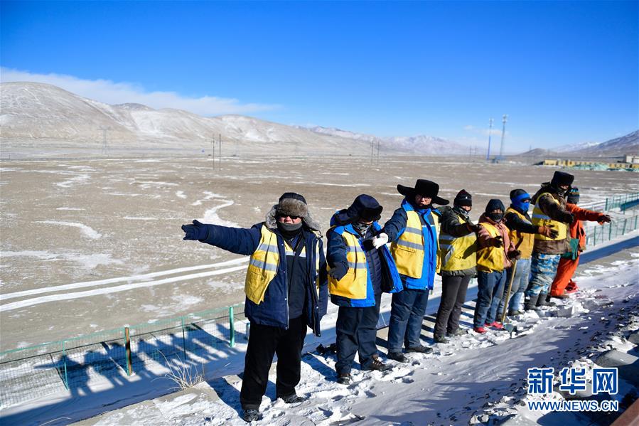 1月11日,中國(guó)鐵路青藏集團(tuán)有限公司格爾木工務(wù)段望昆線路車間的于本蕃(右一)和