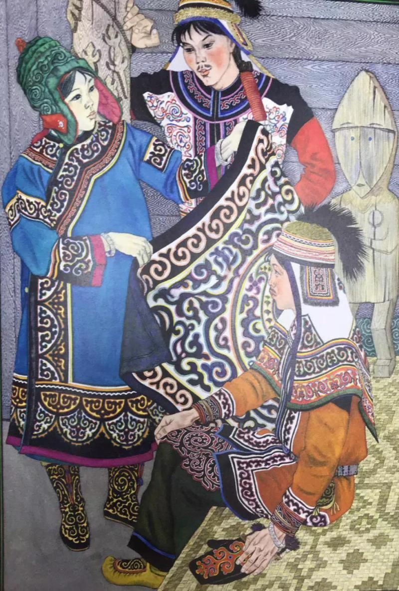 赫哲族和那乃族的婚服也稱“樹服”,樹服對赫哲族和那乃族的婦女有著非凡的意義,女子在結(jié)婚時(shí)穿一次,在生命結(jié)束時(shí)穿一次,因此有著“樹服一件托生死”的說法。