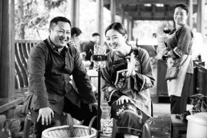 2020年5月15日,湖南湘西十八洞村第三任駐村扶貧工作隊(duì)隊(duì)長(zhǎng)麻輝煌(左)與返鄉(xiāng)大學(xué)生施林嬌一起通過(guò)網(wǎng)絡(luò)直播推銷土特產(chǎn)。 新華社記者 陳思汗攝