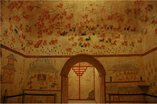 和林格爾東漢壁畫墓復原陳列展。位于和林格爾縣新店子鎮(zhèn)的小板申東漢“使持節(jié)護烏桓校尉”壁畫墓,是秦漢文化的主要標志性實物,是東漢莊園制度的真實再現(xiàn),也是民族團結的重要歷史見證。本館以1:1.5的比例進行了復制并展示給觀眾。