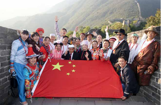 2017年全國少數民族參觀團的各族代表參觀慕田峪長城。(民族畫報記者 娘吉加 攝影)