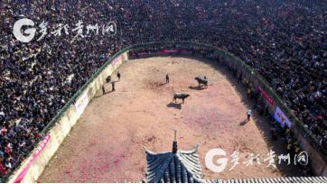 貴州省從江縣第十五屆原生態(tài)侗族大歌節(jié)的前一天,恰逢該縣逢亥斗牛日,丙妹鎮(zhèn)松學(xué)斗牛塘、谷坪鄉(xiāng)四寨河斗牛塘同時(shí)舉辦傳統(tǒng)牛王爭霸賽,喜迎一年一度“侗族大歌節(jié)”的到來,共有來自周邊村寨的80頭水牯牛參戰(zhàn),斗?;顒?dòng)場上名牛角逐,場面異彩紛呈,吸引數(shù)萬名觀眾前來觀戰(zhàn)。