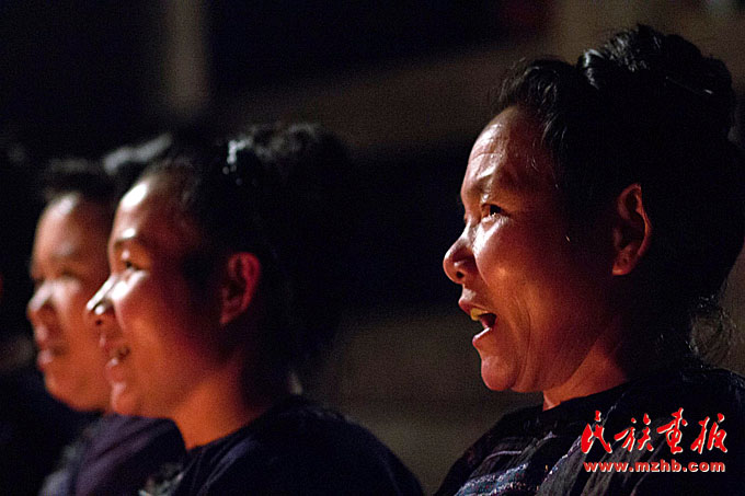 在坐滿了學生的教室里,胡官美耐心地先把歌詞用侗語一遍一遍地教他們,等到大家把歌詞記牢了,再開始把唱歌的調(diào)兒教給孩子們。這首快樂的兒歌是孩子們最喜歡的歌,在鼓樓、在上學路上、在火塘旁、在舞臺中央,他們開心地齊聲大唱。歌聲里,年過六旬的胡官美仿佛又回到了童年。年復(fù)一年的歌聲里,胡老師送走了五批合唱團的學員,共130余名。除了胡老師自己,她的大女兒楊秀珠和大女婿楊秀豪也都在合唱團擔任民族音樂老師。