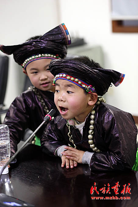 唱大歌的侗族娃。