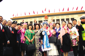 十三屆全國人大一次會議開幕前,少數(shù)民族代表身著盛裝,在人民大會堂前留影。 本報記者 張國欣攝