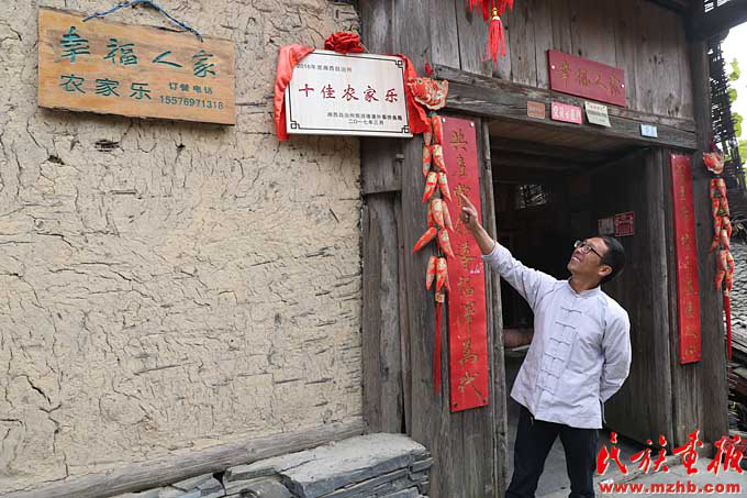 “這名起得好,比我原來想的都好!”43歲的楊超文,在全國(guó)各地打過工,還養(yǎng)過雞,賣過菜,開過車,趕過轉(zhuǎn)轉(zhuǎn)場(chǎng),嘗試過各種創(chuàng)業(yè)。在縣扶貧工作隊(duì)幫助下,楊超文回到家鄉(xiāng)十八洞村并爭(zhēng)取到5萬元貼息扶貧貸款,添置了消毒柜、冰箱、冰柜和一輛三輪摩托車。2016年春天,楊超文的“幸福人家”農(nóng)家樂開起來了。第一天接待了40多位客人,此后隨著游客增多,生意越來越好。