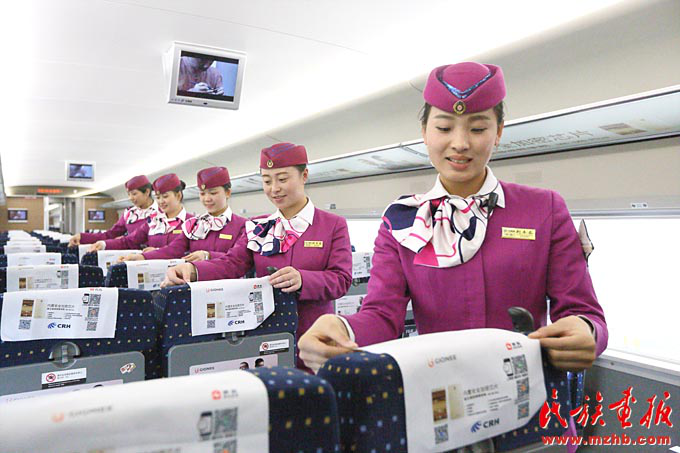 擔(dān)任貴陽至昆明高鐵值乘任務(wù)的“動妹”們進(jìn)行系列安全演練和培訓(xùn),確保為旅客提供優(yōu)質(zhì)服務(wù)(張貴忠 攝影)