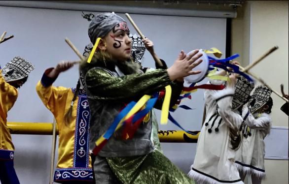 兩個(gè)小女孩在表演那乃族舞蹈