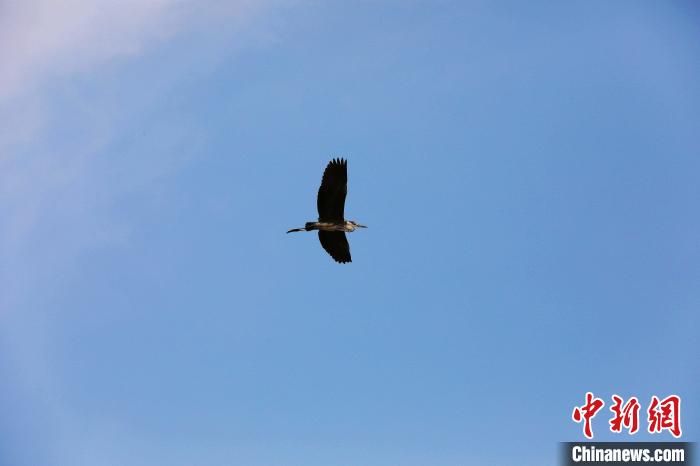 鳥(niǎo)兒在南宮湖濕地公園飛翔?!√锿z