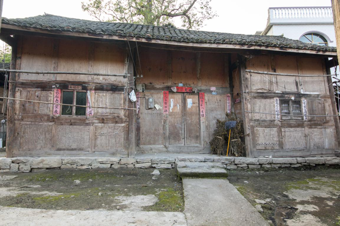 批林村傳統(tǒng)民居為全木結構的吞口屋,常見為三間并列,上下兩層。第一層居中的房屋為堂屋,屋外壁內縮一柱形成吞口。房屋底下還有一層壘砌平整的石基,用以將吞口屋與土層隔離,達到防潮防濕的目的。石基也隨著人們的踩踏,變得圓潤,與傳統(tǒng)建筑一起,成為了歷史的見證者之一。時間的沖滌,石基也開始泛起了亮黑色。