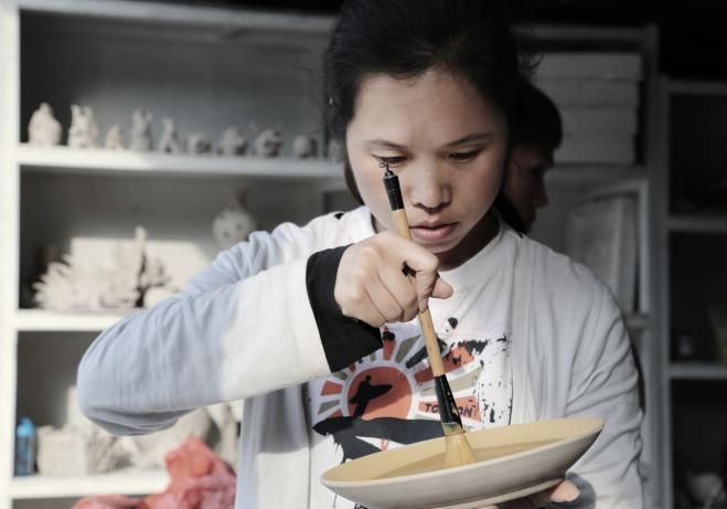 2008年在湖南醴陵進(jìn)行釉下彩繪創(chuàng)作
