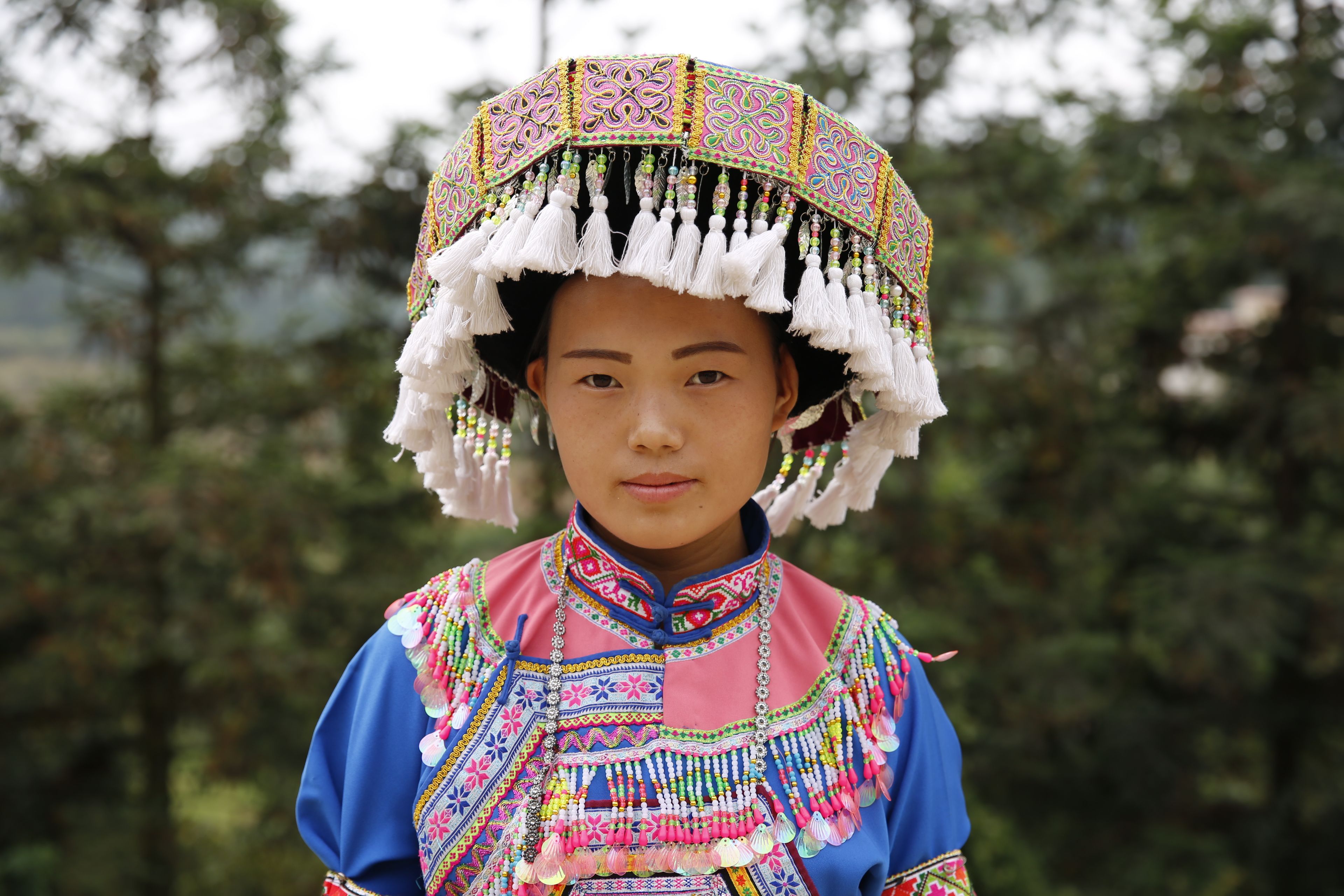 苗族女子服飾花帽周圍裝飾3