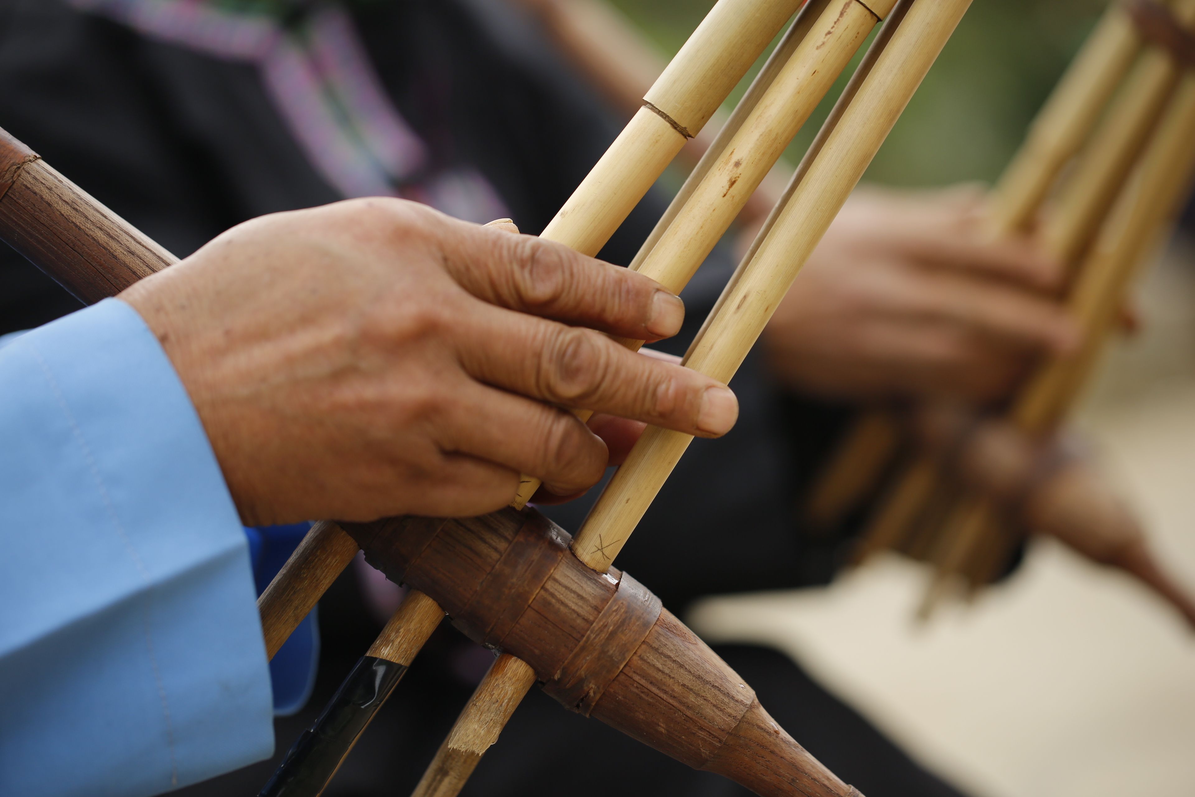 苗族花鼓舞傳承人鄧開(kāi)倫教授他人吹奏蘆笙2